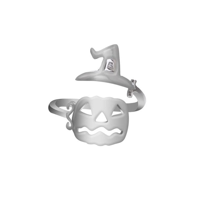 Cute Halloween Decoracion Jewelry Women Rings Witch Hats Broom Mop Pumpkin Lamp Alloy Finger Rings Hollow Out Men's R2139